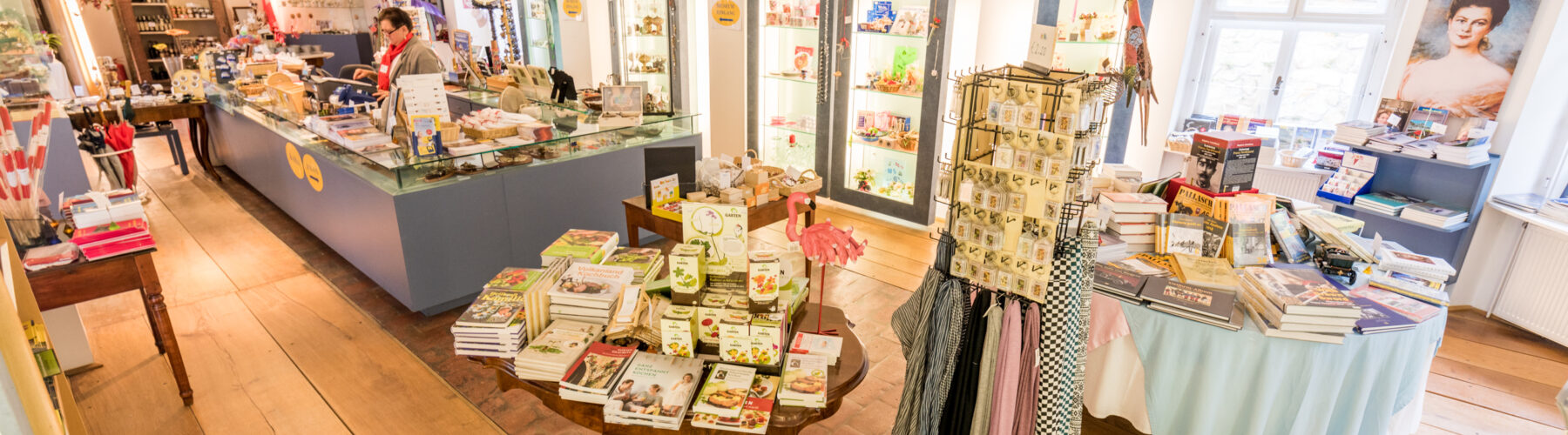 Ein Mitbringsel für Ihre Lieben, ein Andenken für Sie persönlich oder Ansichtskarten, Bücher, Souvenirs, regionale Köstlichkeiten und allerlei Geschenke für besondere Anlässe!