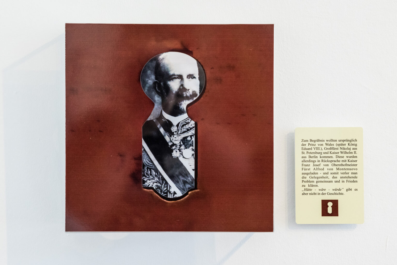Geschichte wird durch einen anderen Blickwinkel gezeigt und konfrontiert den Besucher mit Fragen: Warum bleibt das Auto des Thronfolgers in Sarajewo genau 2,5 Meter vor dem Attentäter stehen? Warum ist der Name Hohenberg am Anfang und am Ende der Monarchie zu finden?